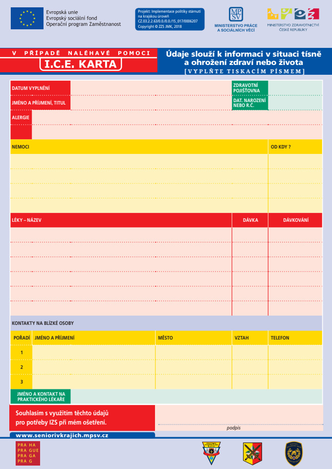 Formulář je po vyplnění potřeba umístit na vnitřní stranu vchodových dveří nebo na lednici doma.