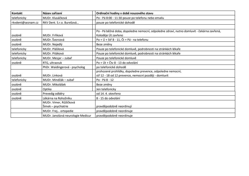 - Restaurace Na hřišti, Čentická 1470 výdej do krabiček, seniorům případně dovezou po dohodě, objednávky přijímají od Po do Pá v době 9.00 – 13.00 hod. na tel. 776747339