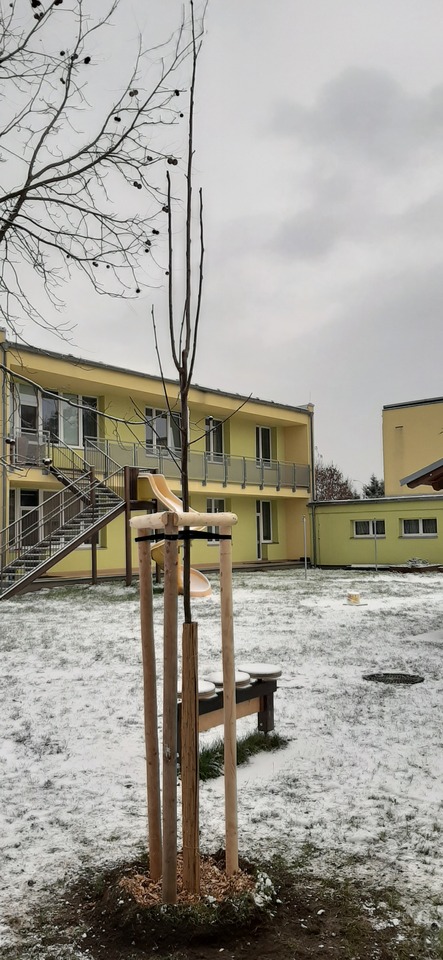 V 1. mateřské škole v Čentické ul. jsme doplnili krásnou novou zahradu o 2 listnaté stromy (jeřáby).