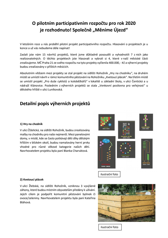 REALIZOVANÉ PROJEKTY – PARTICIPATIVNÍ ROZPOČET MČ PRAHA 21 – ROK 2020