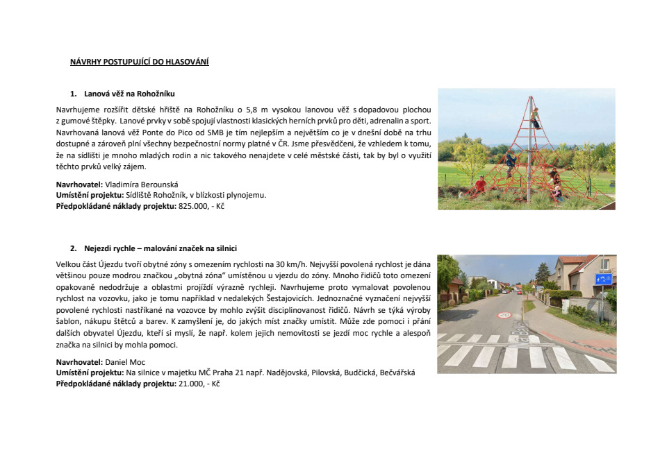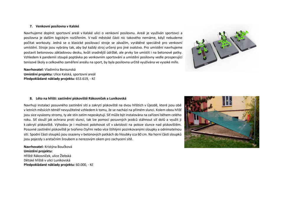 Rada MČ Praha 21 pro letošní ročník vyčlenila z rozpočtu 2 mil. Kč. Zaslali jste nám celkem 15 návrhů a po posouzení realizovatelnosti jich do hlasování prošlo 9! Všem, kteří se do hlasování zapojili, moc děkujeme!