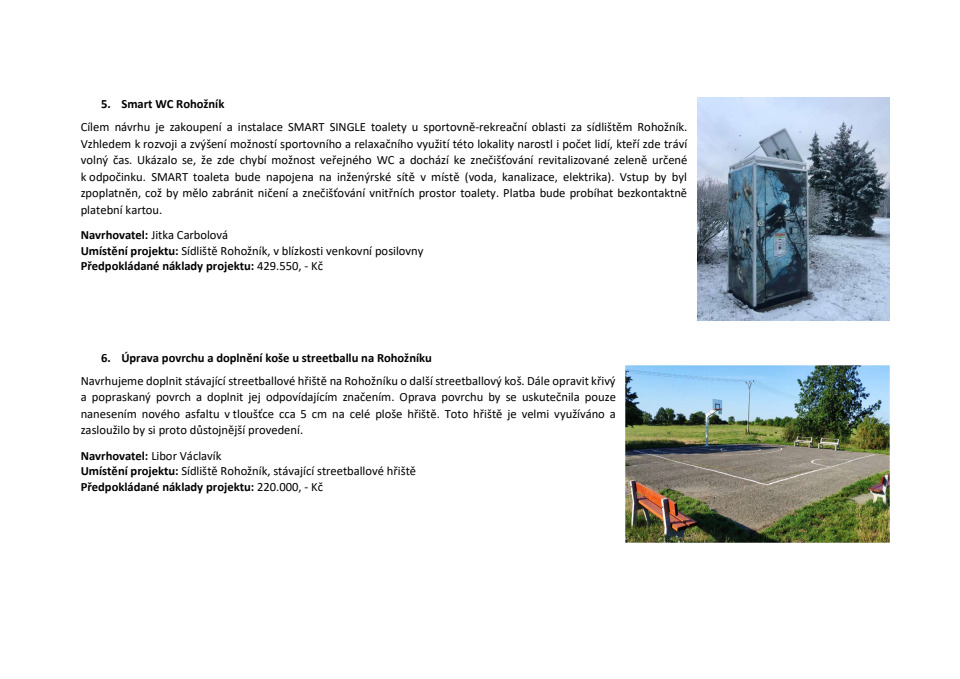 Podoba místa, kde žijete a trávíte velkou část vašich životů vyvolává emoce a je tedy samozřejmé, že se o své okolí zajímáte. Právě návrh víceúčelového hřiště, který u vás vyhrál, vzbudil hned od začátku pozitivní, ale i negativní emoce. Proto radní rozhodli, že v září k tomuto projektu proběhne veřejné projednání přímo na místě. Věříme, že přijmete naše pozvání, a ve čtvrtek 16.9.2021 v 18.00 hodin přijdete diskutovat o projektu na streetballové hřiště na Rohožníku (ulice Žlebská/Miletická). Společný dialog je totiž tou nejlepší cestou k cíli.