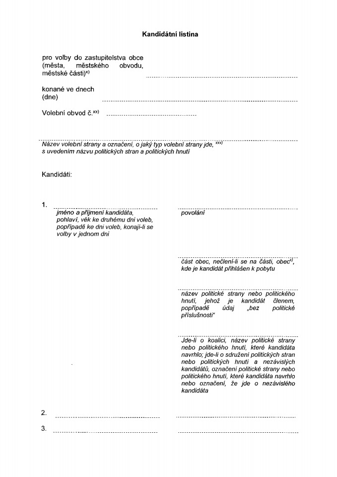 Kandidátní listiny se podávají registračnímu úřadu do úterý 19. července 2022 do 16.00 hodin.