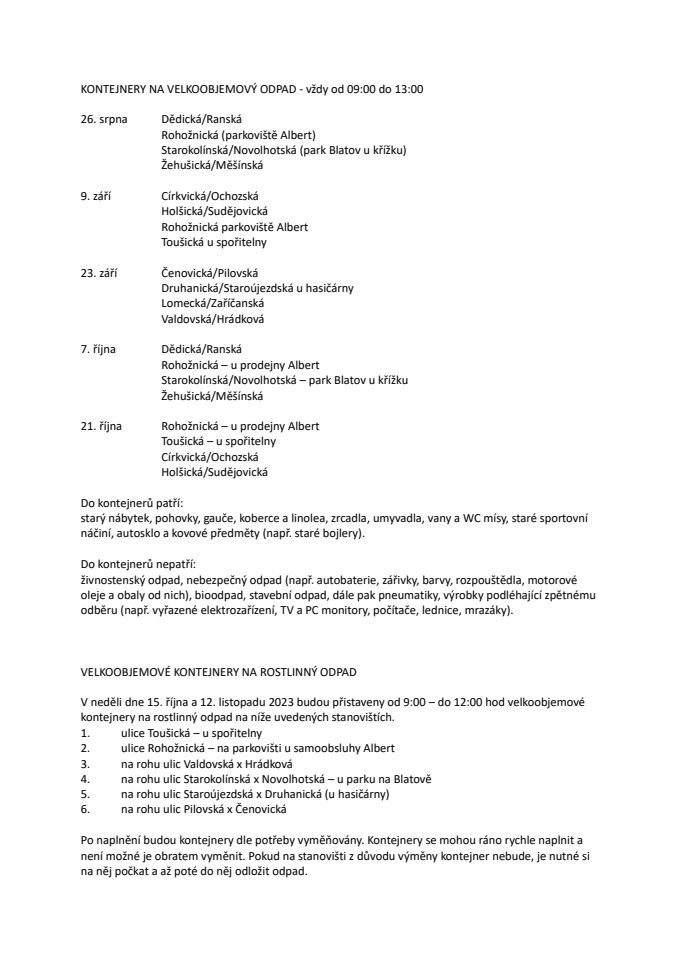 KONTEJNERY NA VELKOOBJEMOVÝ A ROSTLINNÝ ODPAD