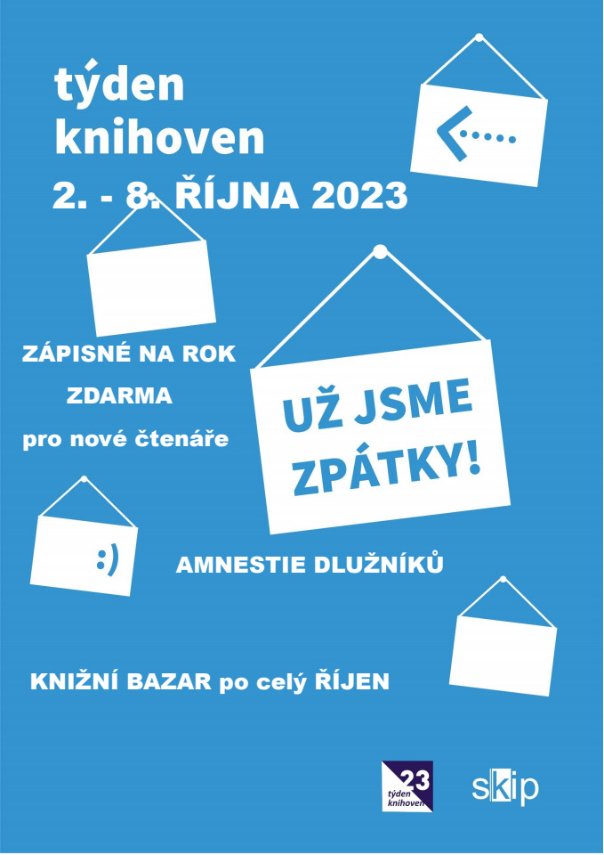 Milí čtenáři, již od devadesátých let probíhá každoročně začátkem října celorepubliková akce Týden knihoven. V letošním roce se k této akci opět rozhodla připojit i naše knihovna. A co jsme si pro Vás připravily? V týdnu od 2. do 8. října budou mít všichni noví zájemci o registraci do knihovny zápisné na rok zdarma. Dále na tento týden vyhlašujeme amnesii dlužníků. Pokud máte doma dlouho půjčené knihy, nemusíte se bát je bezplatně vrátit. Tento týden vám bude upomínka prominuta. Pro velký úspěch jsme se znovu rozhodly zopakovat bazar knih. Po celý říjen můžete k nám do knihovny průběžně nosit zachovalé knihy, které udělají radost dalším čtenářům anebo si na oplátku nějaké knihy sami odnesete domů. Více informací vám rády poskytneme přímo u nás v knihovně. Těšíme se na vás.