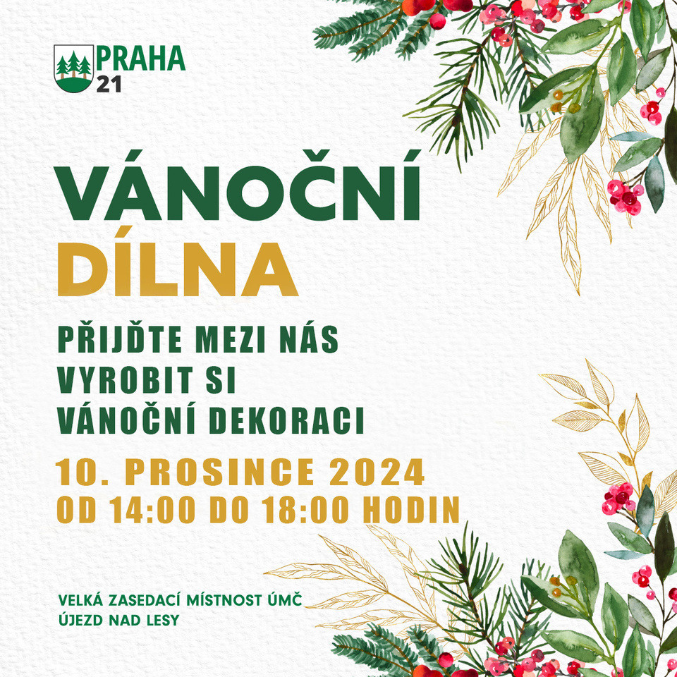 Srdečně Vás zveme na Vánoční dílnu, kterou pořádá Městská část Praha 21. Přijďte si s námi užít odpoledne a společně si vyrobit vánoční dekorace.