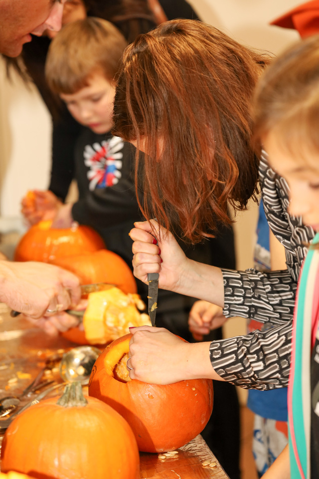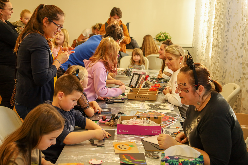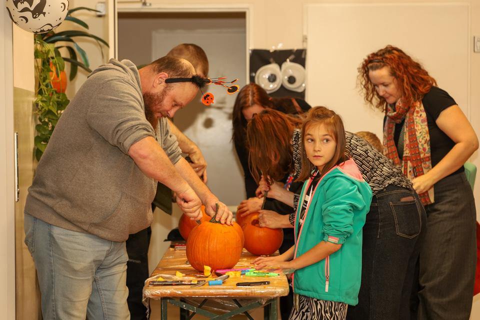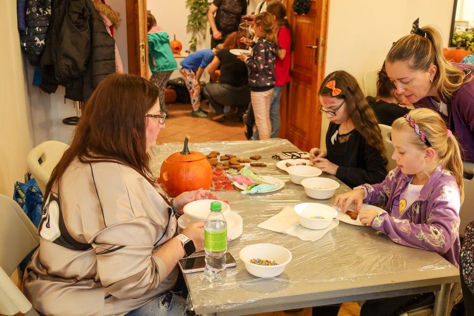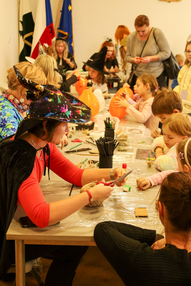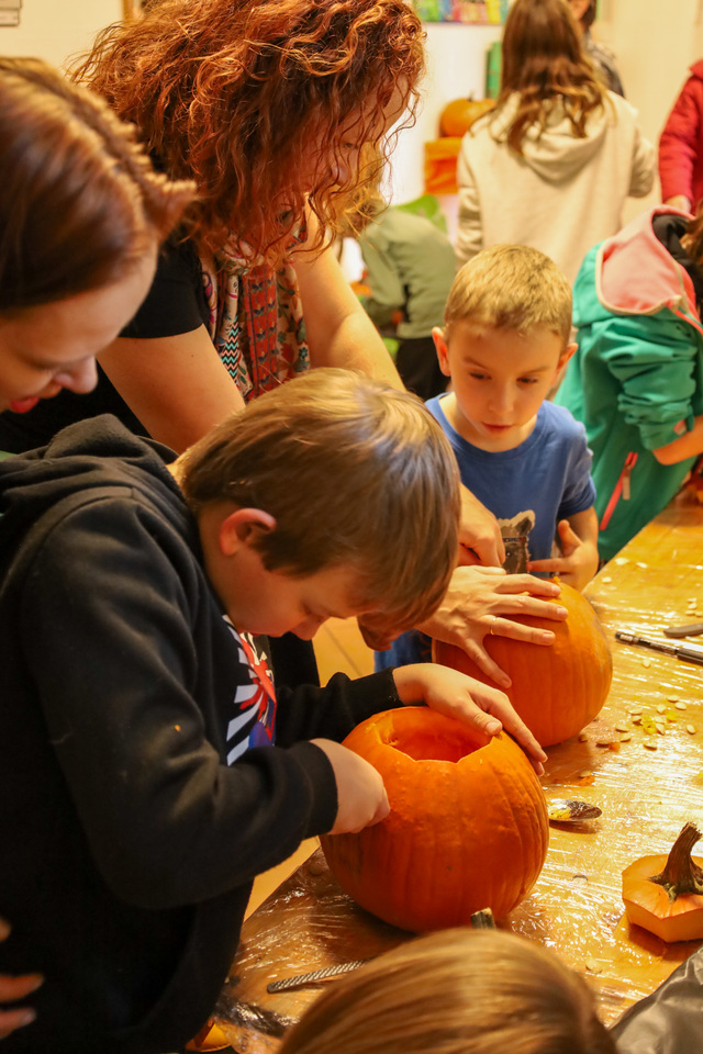 Malí i velcí účastníci si mohli vyzkoušet tvoření halloweenských dekorací – od balonků ve tvaru dýní a duchů, přes pavouky na kolíčku a černé růže s lízátky, až po košťata z tužek nebo zdobení rámečku na fotky. Velký zájem vzbudilo také malování na kamínky a samozřejmě oblíbené dlabání dýní, při kterém vznikly úžasné strašidelné výtvory.