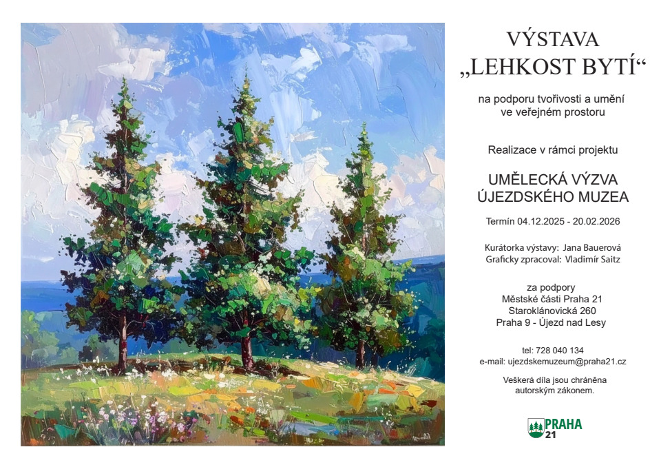 Na konci srpna 2025 vyhlásilo Újezdské muzeum literární a výtvarnou výzvu s cílem podpořit tvořivost a přinést více umění do veřejného prostoru. Téma první instalace – „Lehkost bytí“ – oslovilo autory z celé republiky i ze Slovenska. Do Újezda nad Lesy dorazilo téměř 100 příspěvků: výtvarná díla i literární texty, které se zamýšlejí nad svobodou, radostí i pomíjivostí života.
