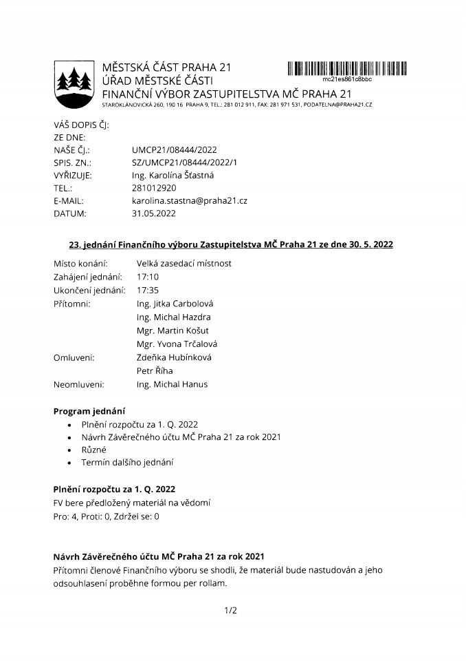 Poslední změna: 16. 3. 2022, 16:04:34, velikost: 79.07 KBZápis z jednání Finančního výboru č. 21_Redigováno .pdf