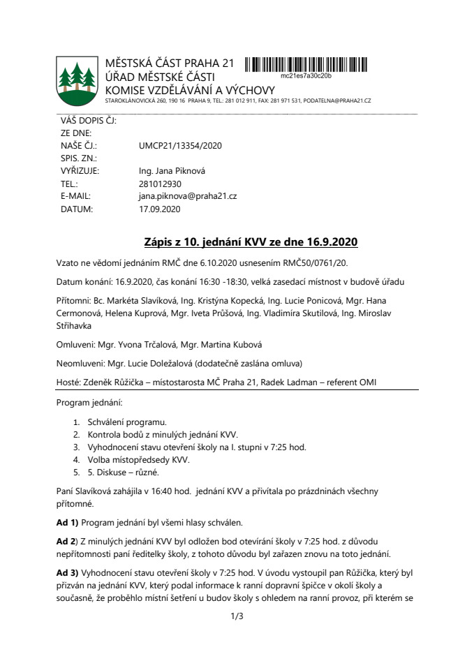 el. podatelna: podatelna@praha21.cz