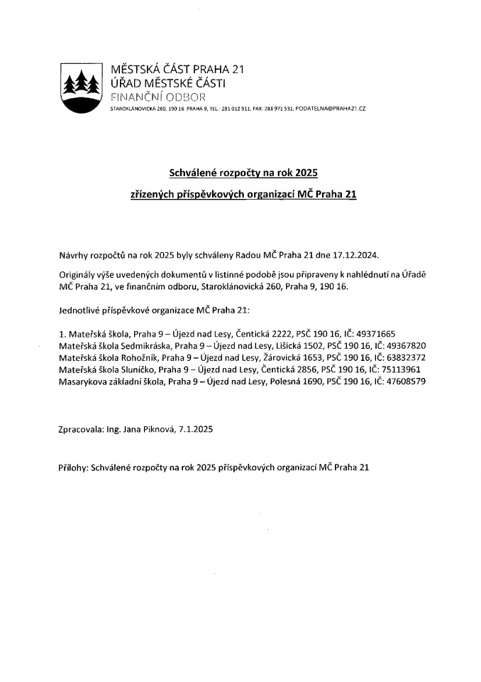 Poslední změna: 05. 5. 2025, 15:30:08, velikost: 151.41 KBRozpočty příspěvkových organizací 2025.pdf