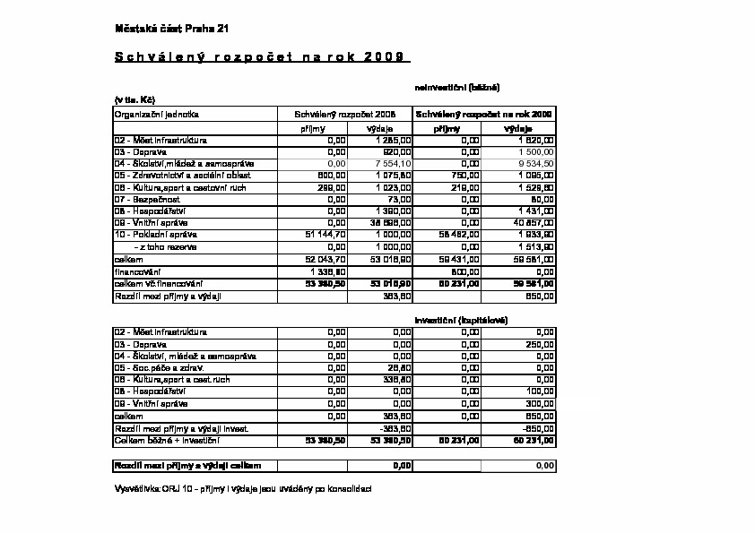 Rozpočet městské části Praha 21 za rok 2009.xls