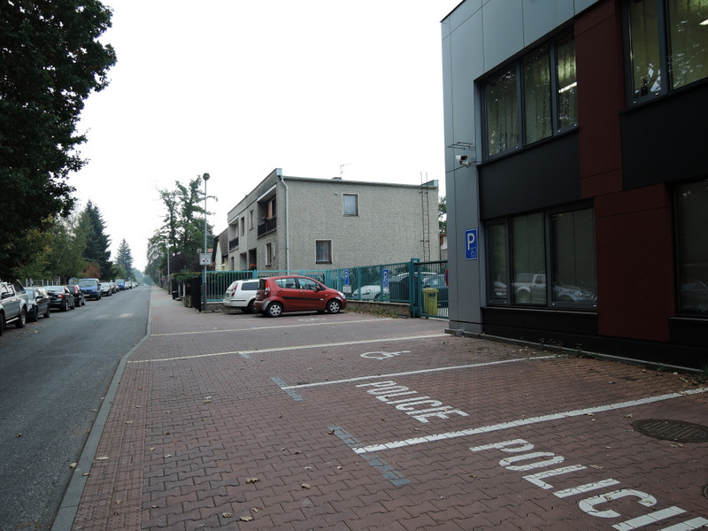 U vedlejšího vstupu jsou 2 vyhrazená parkovací stání pro osoby s omezenou schopností pohybu.