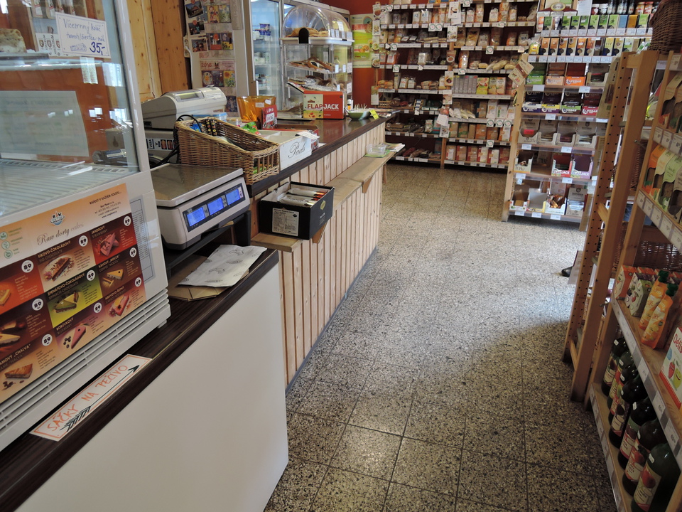 Manipulační prostor v interiéru je dostatečný. Prodejní pult je ve výšce 93 cm.