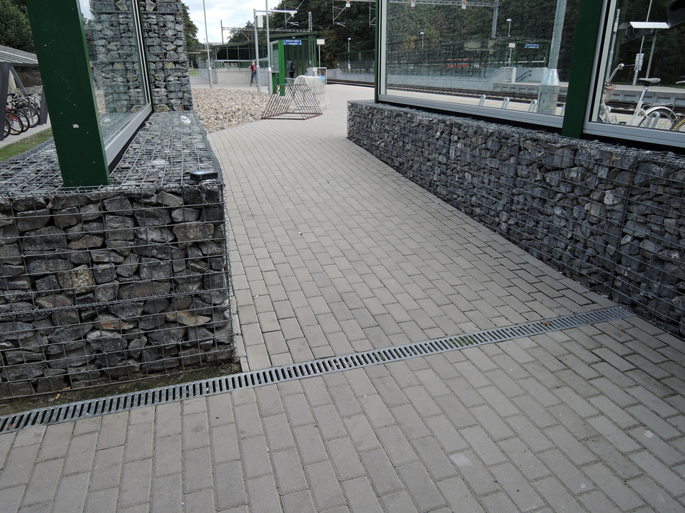 Komunikace v okolí nádraží jsou tvořeny převážně kvalitní zámkovou dlažbou. Protilehlá nástupiště pro odbavení vlakových spojů v opačných směrech jsou rozdělena kolejištěm.