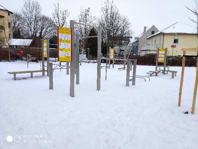 Sportoviště se nachází v těsné blízkosti dětského hřiště, skládá se z krátké běžecké dráhy, warm up plošin na nízké stepy, fitness lavice, klasických a šikmých bradel, kladinky, schodů a balanční plošiny. Celé sportoviště má jednolitou dopadovou plochu z EPDM kaučuku pro měkký a příjemný došlap.