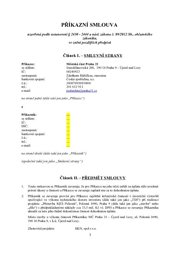 Zajištění inženýrské činnosti v investiční výstavbě spočívající ve výkonu technického dozoru investora při realizaci projektu "Přístavba MZŠ Polesná", Polesná 1690, Praha 9.