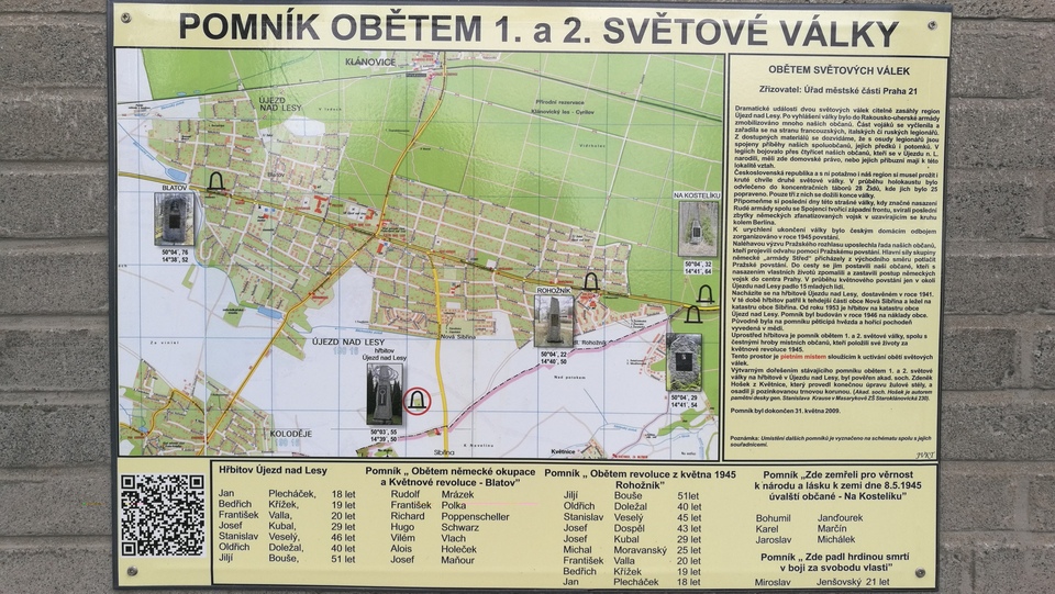 V Újezdě nad Lesy jsou čtyři místa, která na události upomínají – v Masarykově základní škole, na Blatově, na Rohožníku a na hřbitově.