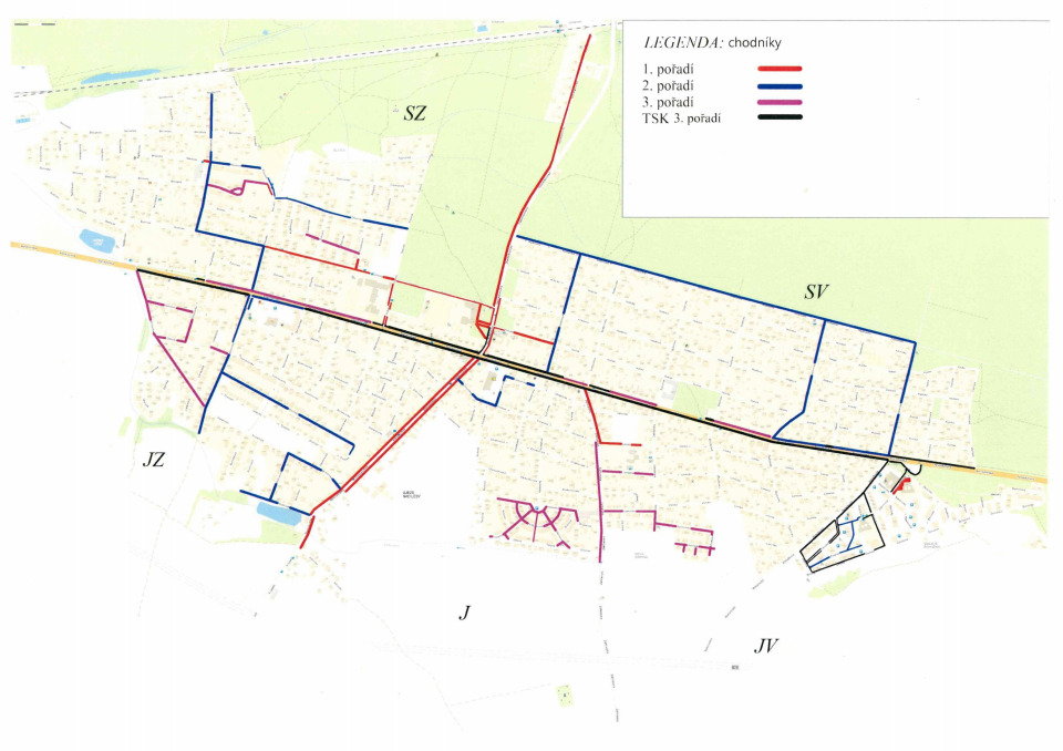 Společnost TSK hl. m. Prahy, a.s. má na starosti hlavní dopravní tahy. Jde o ulice Novosibřinská, Starokolínská, Staroklánovická (včetně části vedoucí k nádraží a otočky autobusu před hotelem Smolík), Staroújezdská, Zaříčanská a Rohožnická, a také úklid zastávek MHD na těchto komunikacích a vybrané úseky přilehlých chodníků (viz přiložené mapy a http://zimniudrzba.tsk-praha.cdsw.cz/imapa.aspx ). Všechny tyto ulice mají stejnou prioritu, pro silnice to je I. pořadí, pro chodníky to je III. pořadí.