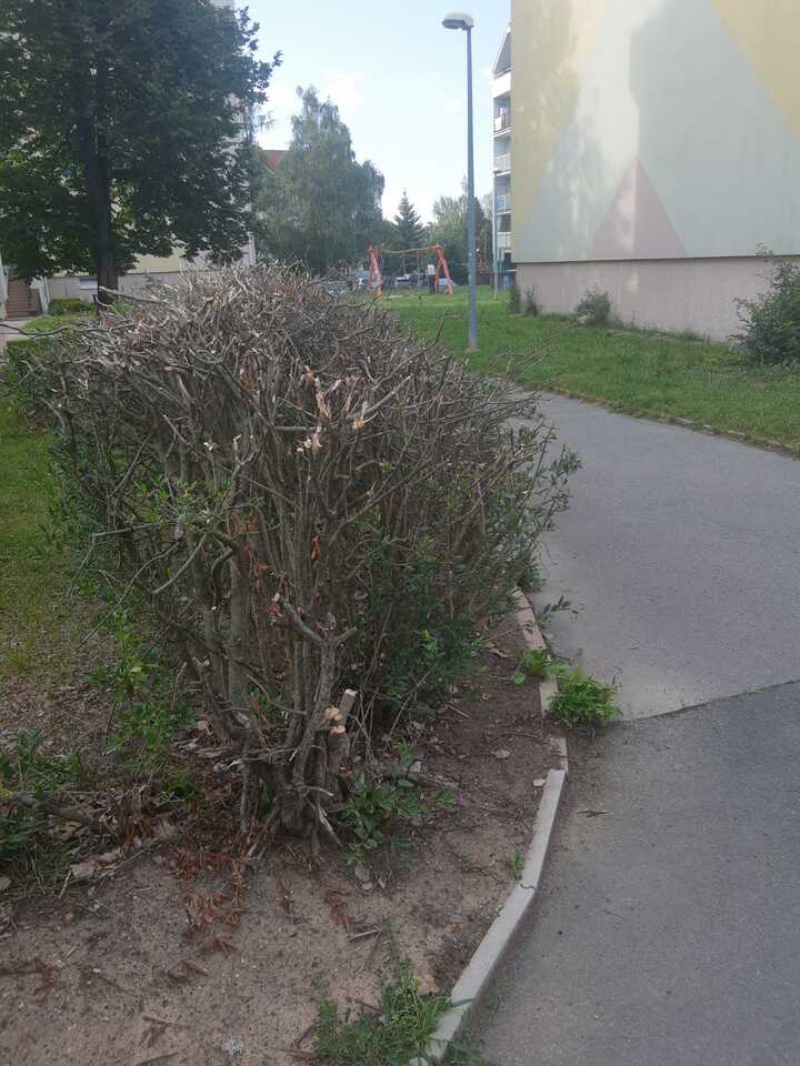 Chvályhodná snaha o zlepšení vzhledu obce, bohužel nevhodné provedení. I tak by se dala popsat snaha některého z našich občanů, který se rozhodl k radikální úpravě vzrostlých keřů v ulici Žlebská. Neodborným a ve svém důsledku i nevzhledným provedením byla výrazně snížena funkční a estetická hodnota těchto keřů, minimálně na několik měsíců. Je třeba vést v patrnosti, že již během léta slouží plody keřů jako potrava pro ptactvo hnízdící v pásu izolační zeleně na Rohožníku a takto poškozené keře v letošním roce nebudou schopny tuto funkci plnit v plném rozsahu. Do budoucna apelujeme na občany, aby požadavky na zásahy do městské zeleně konzultovali s úřadem, který zajistí jejich odborné provedení takovým způsobem, aby se předešlo případnému poškození dřevin.