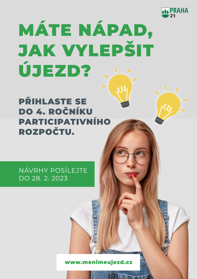 Přijměte naše pozvání na již 4. ročník a pojďte společně s námi měnit Újezd. Rada MČ Praha 21 pro rok 2023 vyčlenila v rozpočtu částku 2 mil. Kč na Vaše nápady.