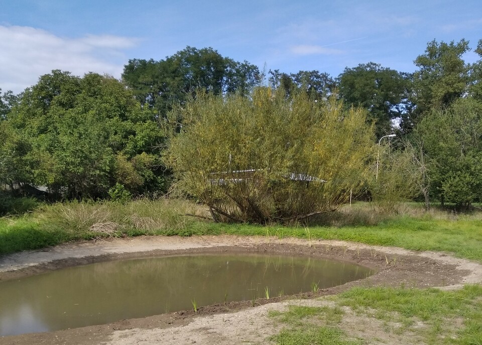 Tůň – vznikla ve stejných místech, kde se v minulosti držela voda, jen byla obohacena o litorální pásma, tedy různě hluboká místa, kde se mění výška hladiny. Díky tomu, se zde daří vodním kosatcům, orobinci nejmenšímu a dalším bahenním rostlinám, které zase tvoří podmínky pro rozvoj obojživelníků. A tak zde najdete a uslyšíte např. vzácné skokany skřehotavé.