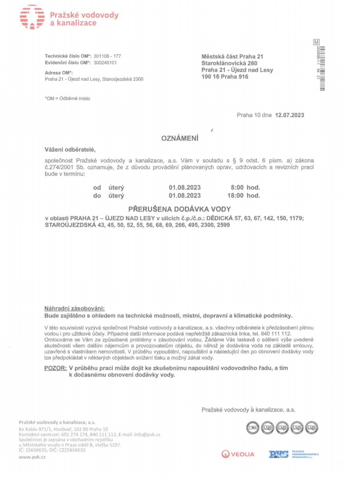 AktualitaOznámení o přerušení dodávky vodyNaposledy upraveno: 14. červenec 2023oznámení.pdfPoslední změna: 14. 7. 2023, 08:38:47, velikost: 255.07 KB Stáhnout Číst Náhled Osoba odpovědná za aktuálnost informací: Majerová Alena StavPublished