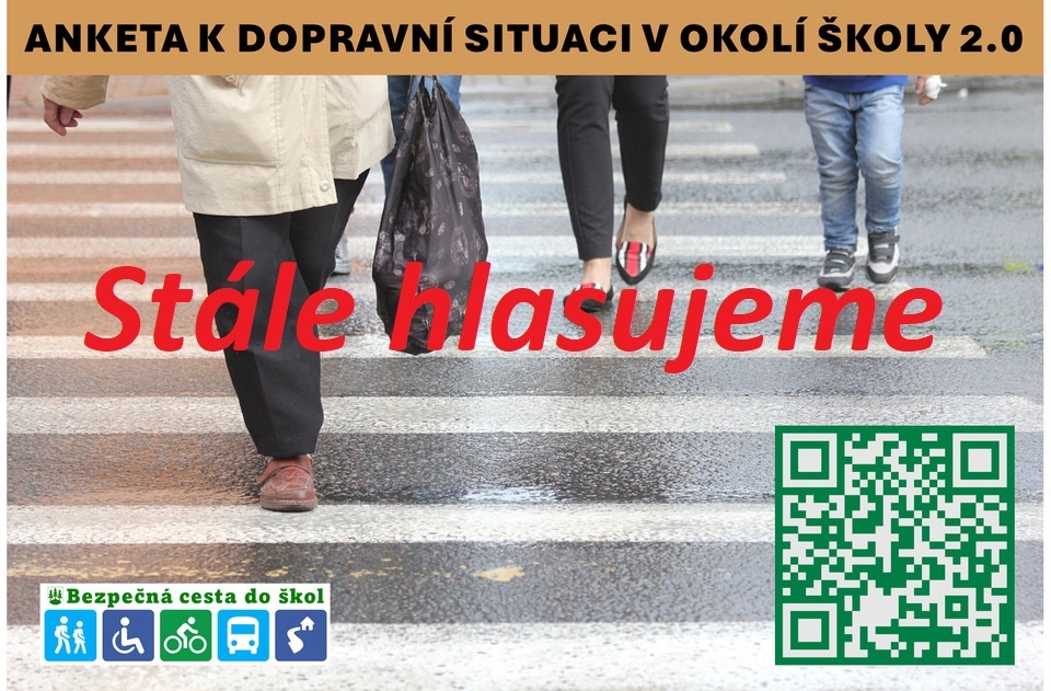 Anketa ověřující zvyklosti našich dětí při cestě do školy stále běží, zúčastnit se můžete i Vy. Vyjádřete svůj názor vyplněním elektronického dotazníku pod odkazem https://www.munipolis.cz/app/anketa/ILazTPf6. Anketa bude ukončena dne 20. 5. 2024.
