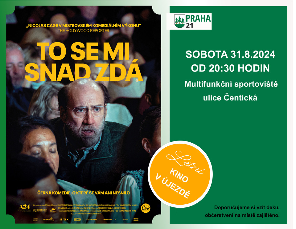 Přijďte si vychutnat večer plný zábavy a dobré nálady, jak jste zvyklí. Těšit se můžete na projekci černé komedie "To se mi snad zdá". Občerstvení na místě bude zajištěno, takže si nemusíte dělat starosti s jídlem a pitím. Doporučujeme však vzít si s sebou deku, aby Vám bylo pohodlně a teple.