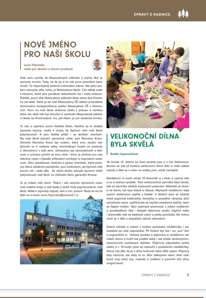 To nás a zejména pana ředitele Skalu, kterého se to dotýká opravdu nejvíce, vedlo k úvaze, že bychom rádi naši školu přejmenovali. A pan ředitel přišel i se skvělým návrhem. Na naší škole působil významný učitel pan Stanislav Kraus. Pan generál Stanislav Kraus, byl mužem, který svou osobní statečností za II. světové války, neochvějným bojem za svobodu a demokracii v naší zemi, obhajobou její samostatnosti a státnosti a ochotou položit za svou vlast i život, je dodnes pro nás všechny, nejen v Újezdě, příkladem vynikající a inspirativní osobnosti. Jeho zásadovost, čestnost a pevný charakter, které potvrzují četná svědectví pamětníků, jsou hodnotami, jež bychom rádi naučili ctít i naše děti. Ze všech těchto důvodů bychom chtěli přejmenovat naši školu na Základní školu generála Krause.