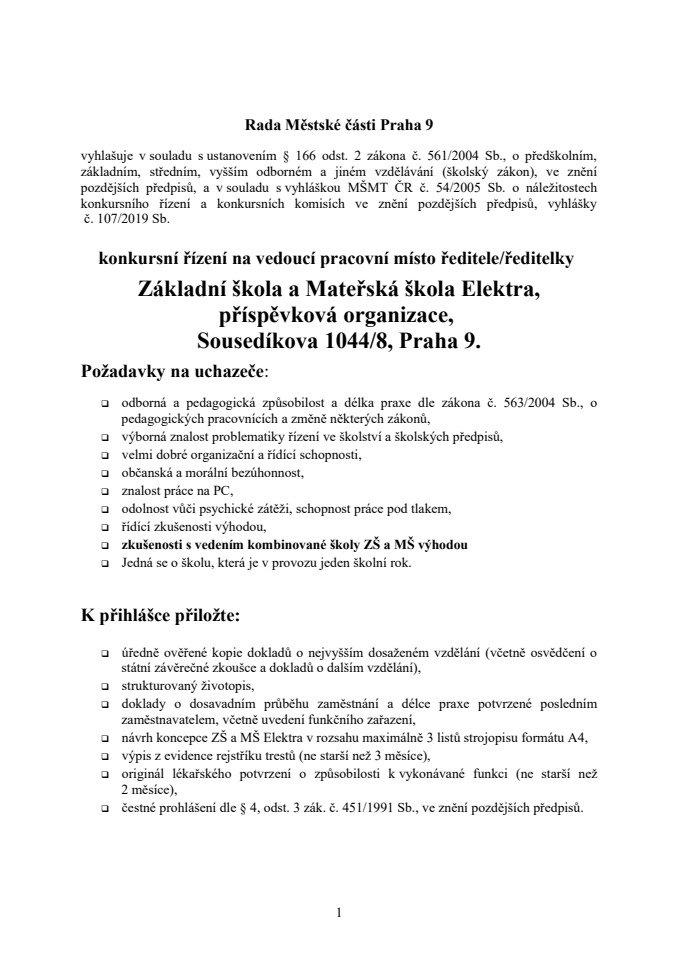 Základní škola a Mateřská škola Elektra,