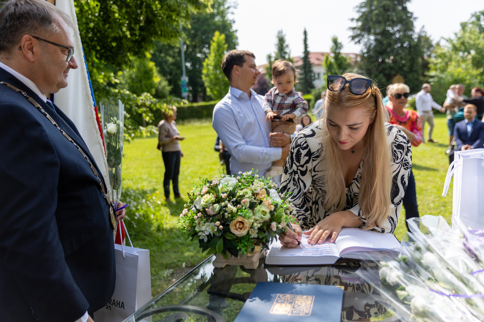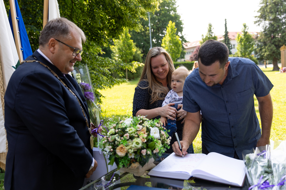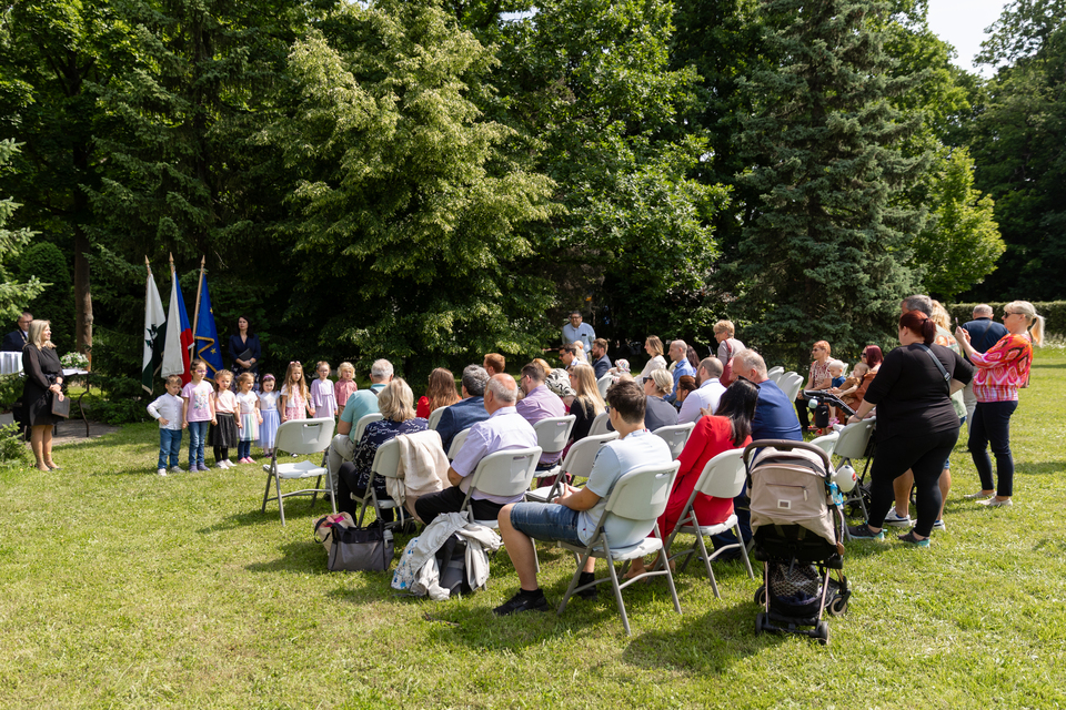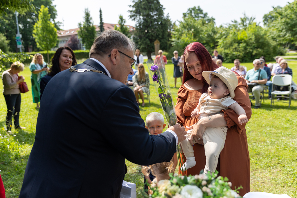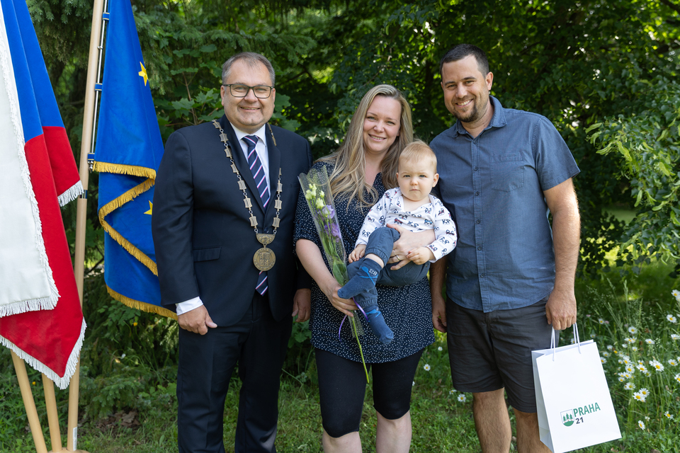 V nádherném červnovém počasí jsme v úterý 10.6.2025 v naší městské části Praha 21 přivítali nové občánky. Slavnostní chvíle proběhla v parku před 1. stupněm Masarykovy základní školy za účasti pana starosty Michala Hazdry, který srdečně přivítal celkem 27 dětí – 15 holčiček a 12 chlapečků.
