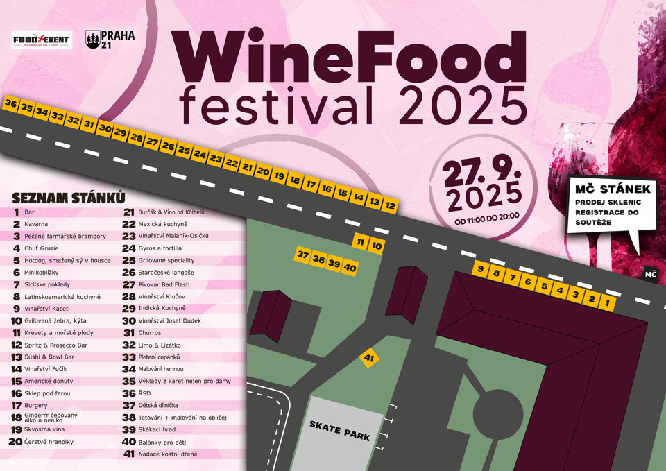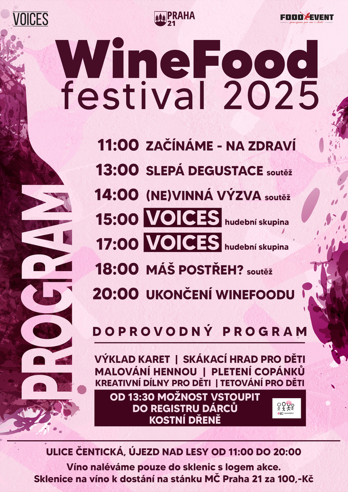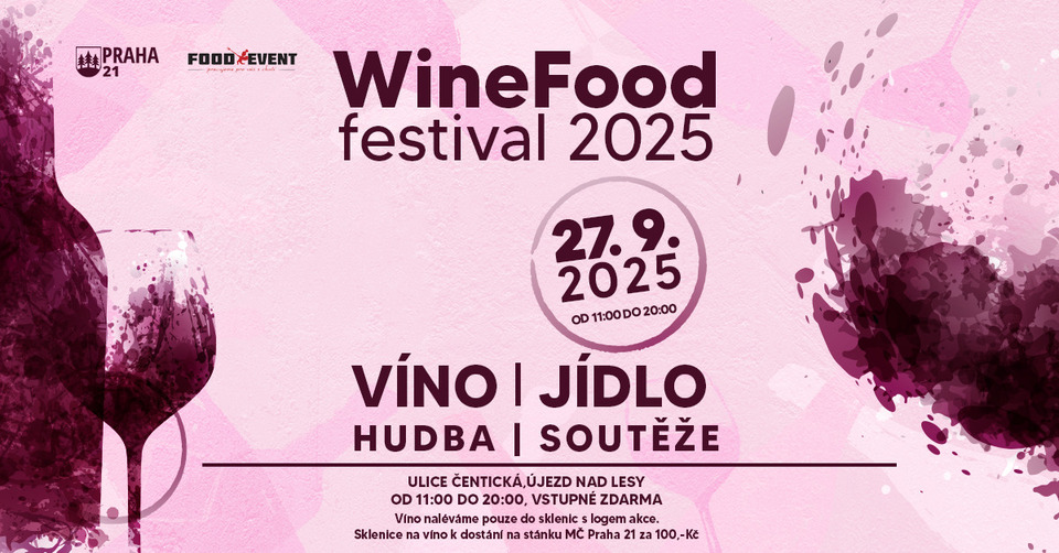 Přijďte s námi oslavit krásné období vinobraní! V sobotu 27. září 2025 se na ulici Čentická (u Multifunkčního hřiště) uskuteční již 4. ročník festivalu WINEFOOD, který propojuje to nejlepší z vinařské a gastronomické kultury.
