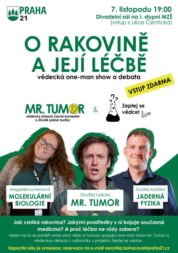 Vědecká one-man show a debata - O RAKOVINĚ A JEJÍ LÉČBĚ