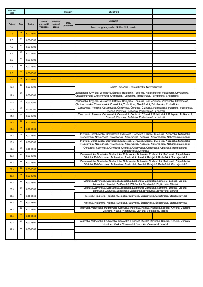 Aby to šlo technice pěkně od ruky, budeme rádi, když v době úklidu necháte ulice pokud možno volné a nebudete parkovat na vozovce🚘.