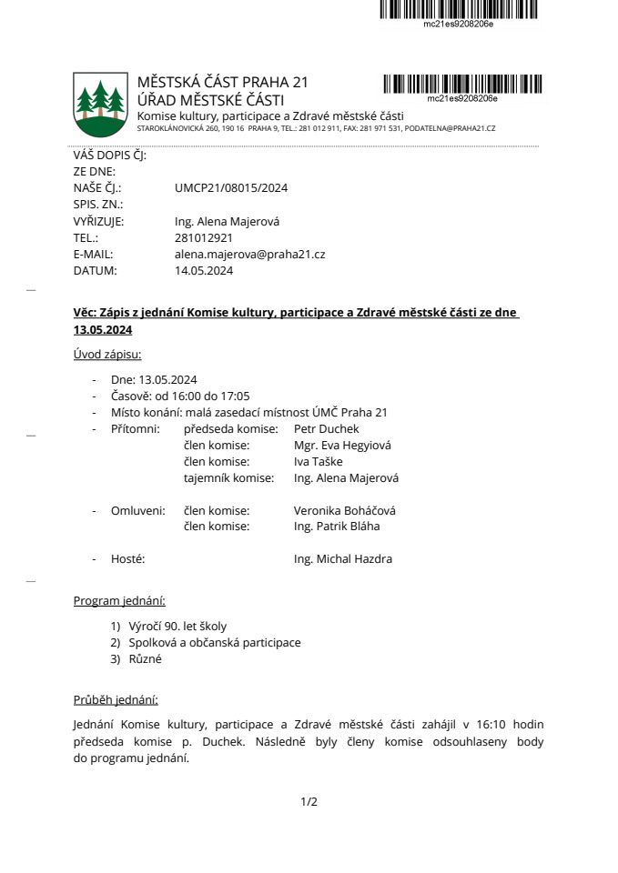 Poslední změna: 20. 5. 2024, 16:01:45, velikost: 77.97 KBZapis_z_jednani_Komise_kultury_participace_a_Zdrave_mestske_casti_ze_dne_10.06.2024 (1).pdf