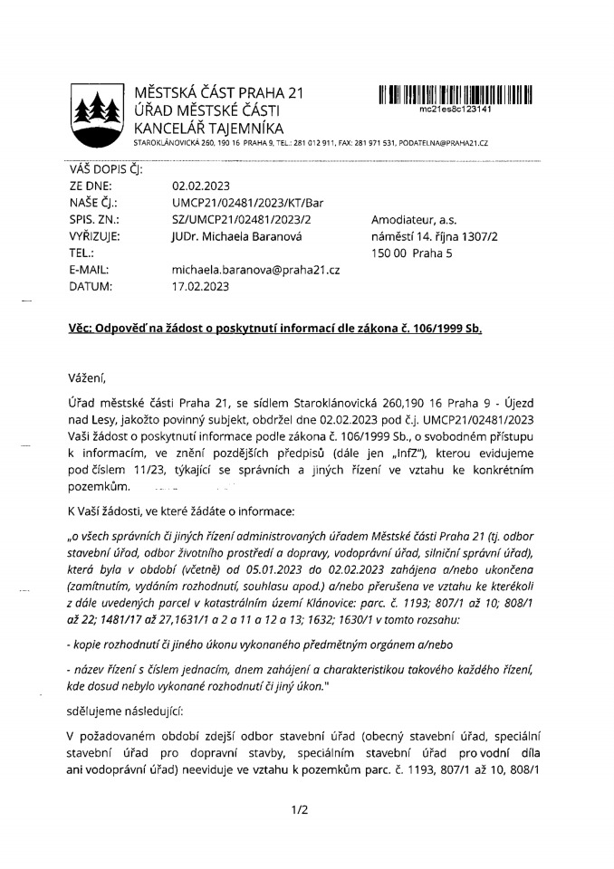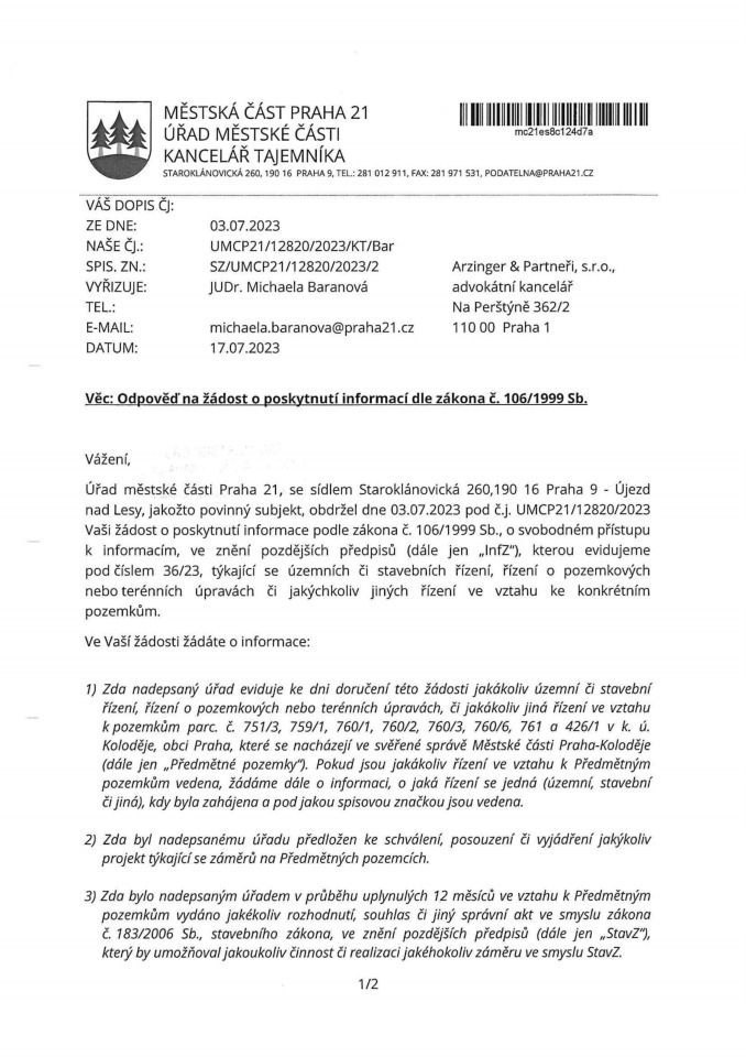 Poslední změna: 19. 6. 2023, 06:34:14, velikost: 671.06 KB029 - 2023_05_31 - informace_o_správních_a_jiných_řízeních_ve_vztahu_ke_konkrétním_pozemkům_Redigováno.pdf