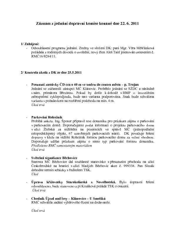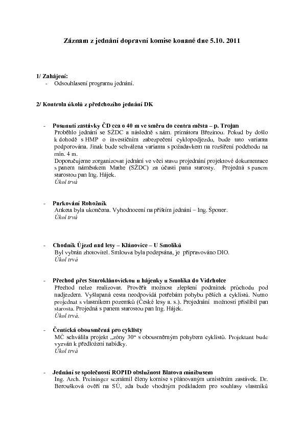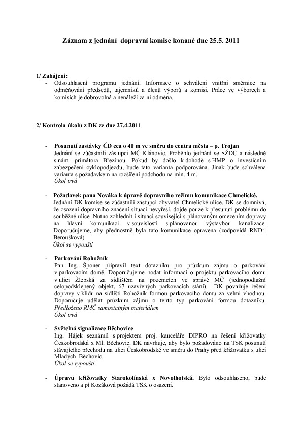 Poslední změna: 29. 11. 2018, 08:46:24, velikost: 198.75 KB110525_6_Zápis dopravní komise konané dne 25 5 2011_Interní.doc