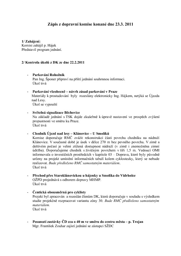Poslední změna: 29. 11. 2018, 08:46:24, velikost: 40 KB110323_4_Zápis dopravní komise konané dne 23 3 2011_Interní.doc