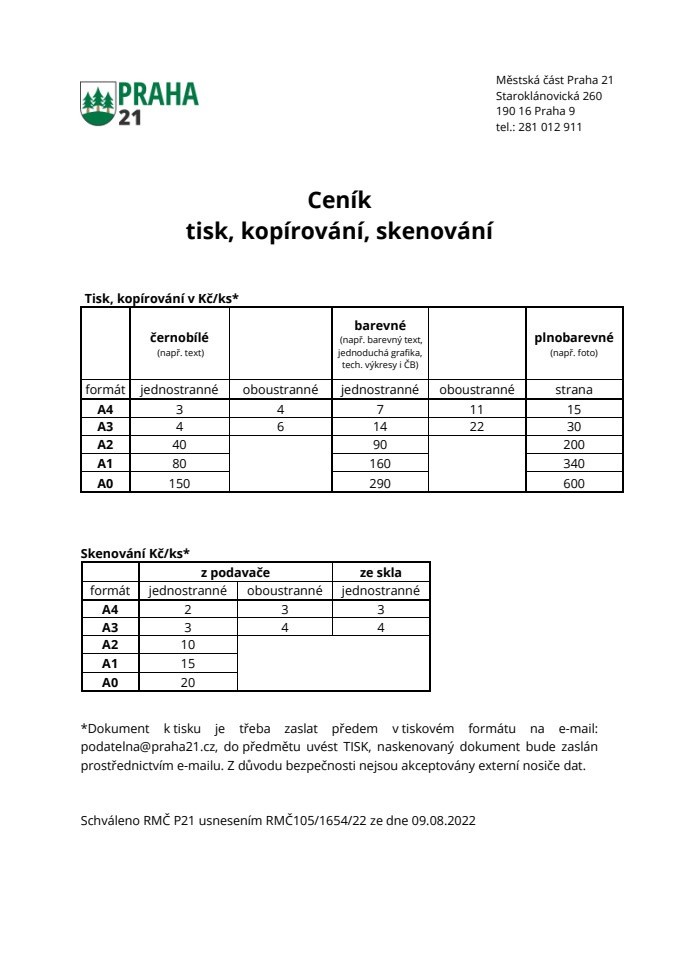 Sazebník úhrad za tisk, kopírování, skenování na podatelně