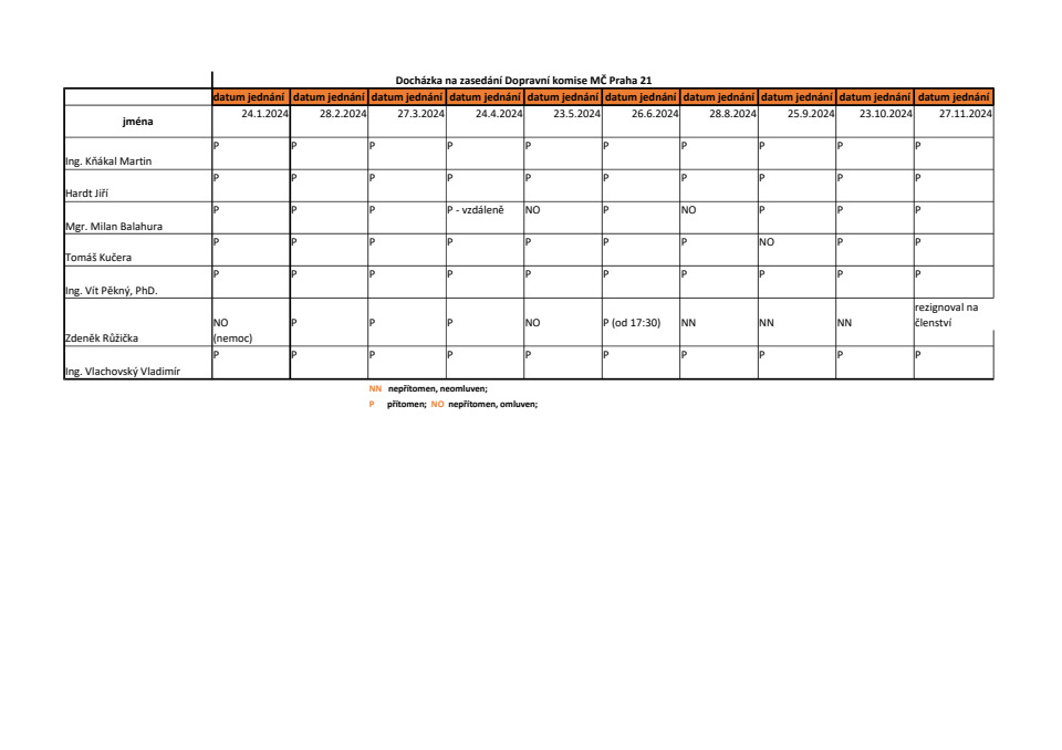 Přehled docházky: