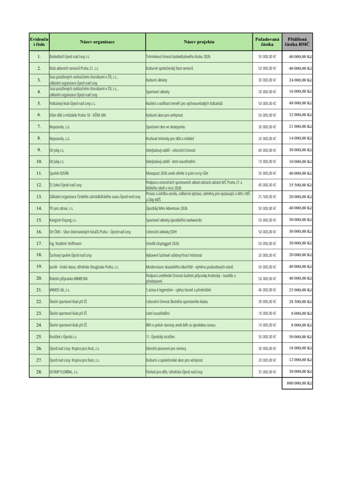 - usnesením č. RMČ/103/1417/26 ze dne 24.02.2026 byly RMČ Praha 21 schváleny programové dotace pro rok 2026.